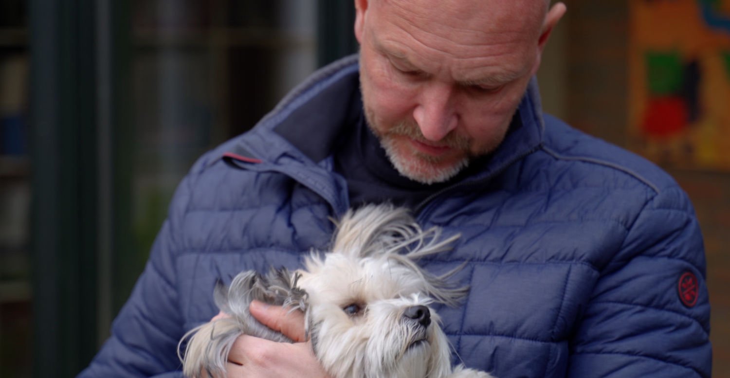 “Ik ben Wouter, radiomaker bij NPO Radio 2 en ik ben de hele blije trotse eigenaar… kan je dat zeggen? Eigenaar? Naja, dit is mijn hond Teddie. In principe bepaalt zij wat er gebeurt.”