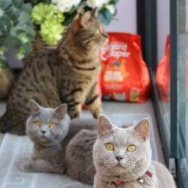 “Ze mogen overal in huis komen, behalve in de keuken of op het aanrecht. Ze krijgen geen tafelrestjes, aangezien ik geloof dat hoogwaardig kattenvoer beter is voor hun gezondheid. Het zijn binnen-katten: alleen opa gaat naar buiten, maar meestal voor slechts een half uurtje per dag. Daarna slaapt hij weer lekker verder, of komt hij op schoot zitten.😺”