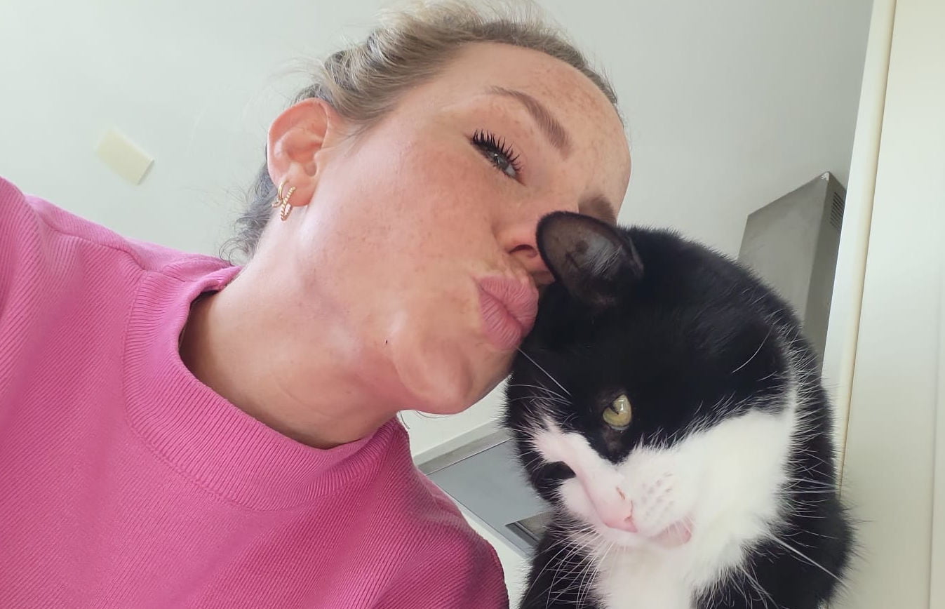 “Ja! Hij komt altijd bovenop me liggen met zijn grote lijf. Grappig feitje: hij kwam met het huis. De vorige bewoners vonden het zo zielig om hem te verplaatsen, dat ze zeiden van nou: dan blijft hij daar wonen. Dat vonden wij prima natuurlijk. Zijn naam bleef een raadsel. Dus toen ben ik hem maar Ollie gaan noemen. Vroeger had ik trouwens niks met katten, vond ze altijd irritant. Nu ben ik een irritante catmom, haha. Laatst kwamen we achter zijn oorspronkelijke naam: Fitz. Gelukkig luistert hij naar alle namen: Fitz, bolletje, Ol, Ollie, of zoals mijn vriend hem noemt: de kat.”